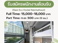 รับสมัครพนักงานต้อนรับ Siam Eco Hostel